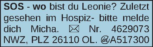 Zuletzt gesehen im Hospiz St. Peter - bitte melde dich Micha
