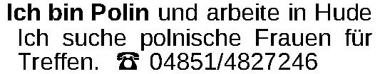 Ich bin Polin und arbeite in Hude Ich suche polnische Frauen für Treffen. ‡ 04851/4827246Kontakt