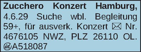 Suche wbl. Begleitung 59+, für ausverk. KonzertKontakt