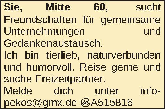 Anzeigentitel: Sie, Mitte 60,
