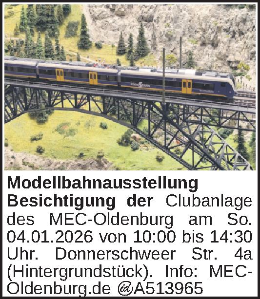 Besichtigung der Clubanlage des MEC-Oldenburg am So. 04.01.2026 von 10:00 bis 14:30 Uhr. Donnerschweer Str. 4a (Hintergrundstück). Info: MEC-Oldenburg.deKontakt