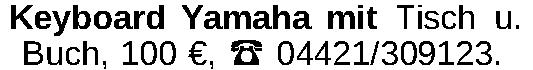 Keyboard Yamaha mit Tisch u. Buch, 100 €, ‡ 04421/309123.Kontakt
