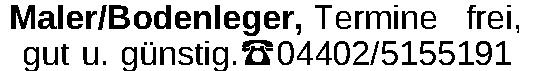 Maler/Bodenleger, Termine frei, gut u. günstig.‡04402/5155191Kontakt