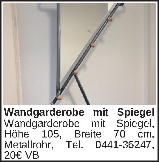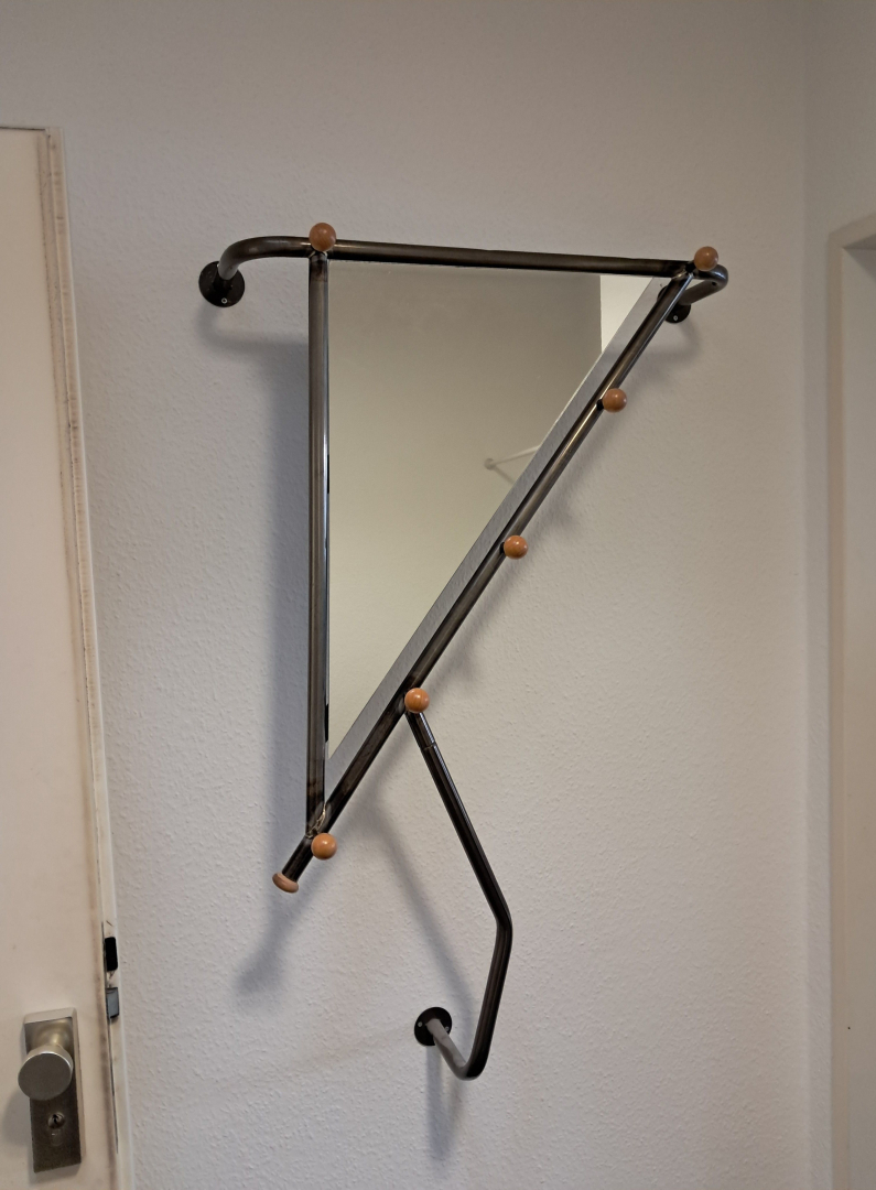Wandgarderobe mit Spiegel, Höhe 105, Breite 70 cm, Metallrohr, Tel. 0441-36247Kontakt