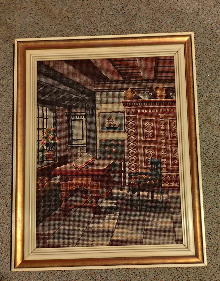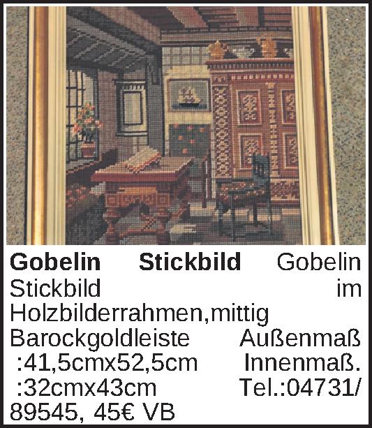 Gobelin Stickbild im Holzbilderrahmen,mittig BarockgoldleisteAußenmaß :41,5cmx52,5cm