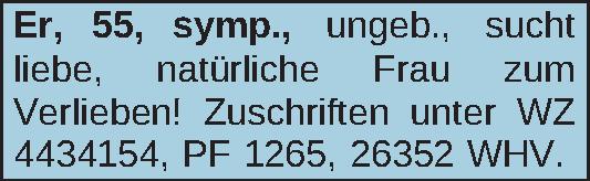 Anzeigentitel: Er, 55, symp., ungeb.,