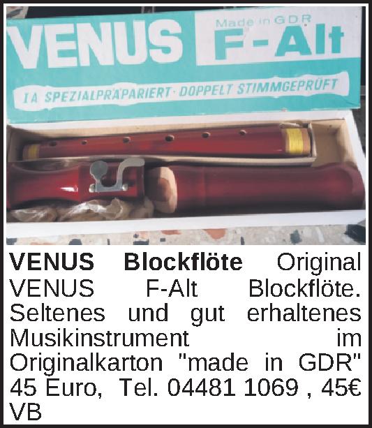Anzeigentitel: VENUS Blockflöte