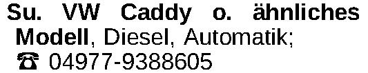 Su. VW Caddy o. ähnliches Modell, Diesel, Automatik; ‡ 04977-9388605Kontakt