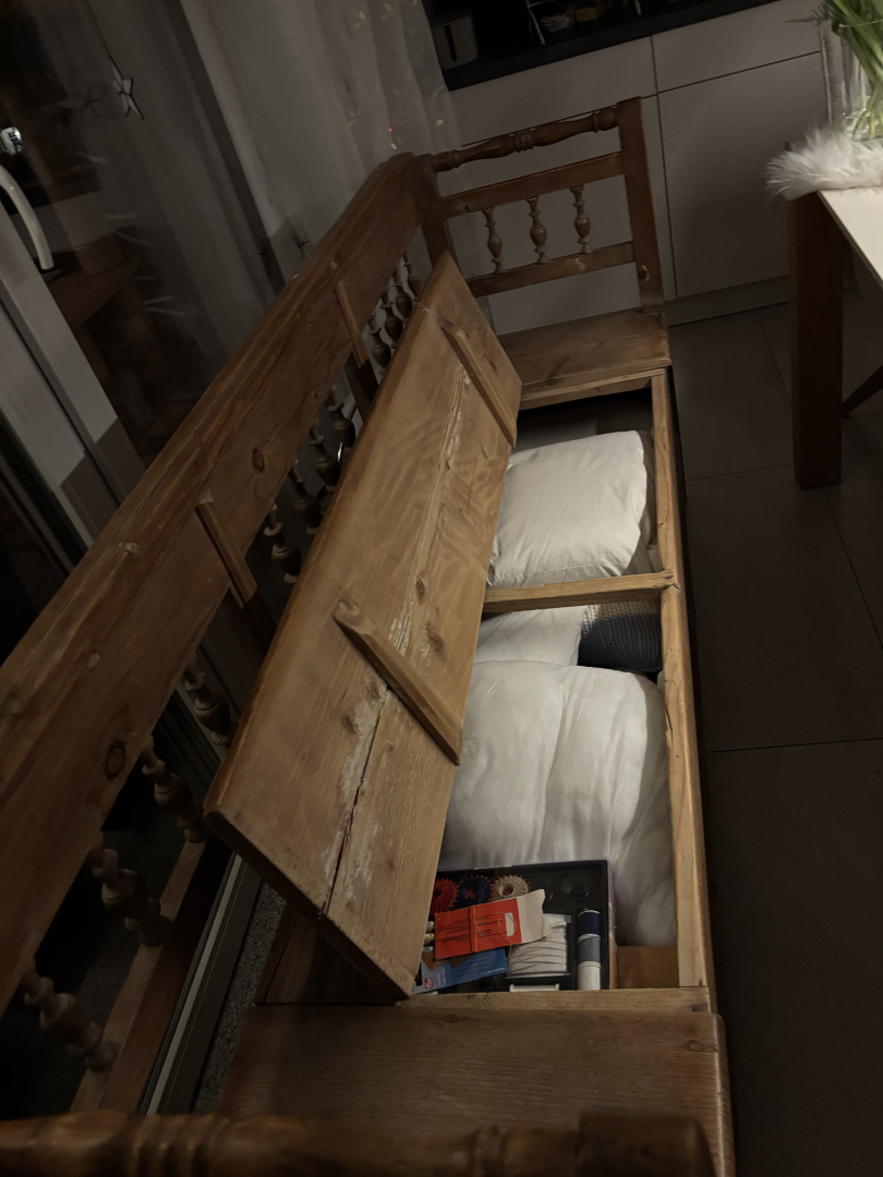 Anzeigentitel: Schwedische Truhenbank um 1800