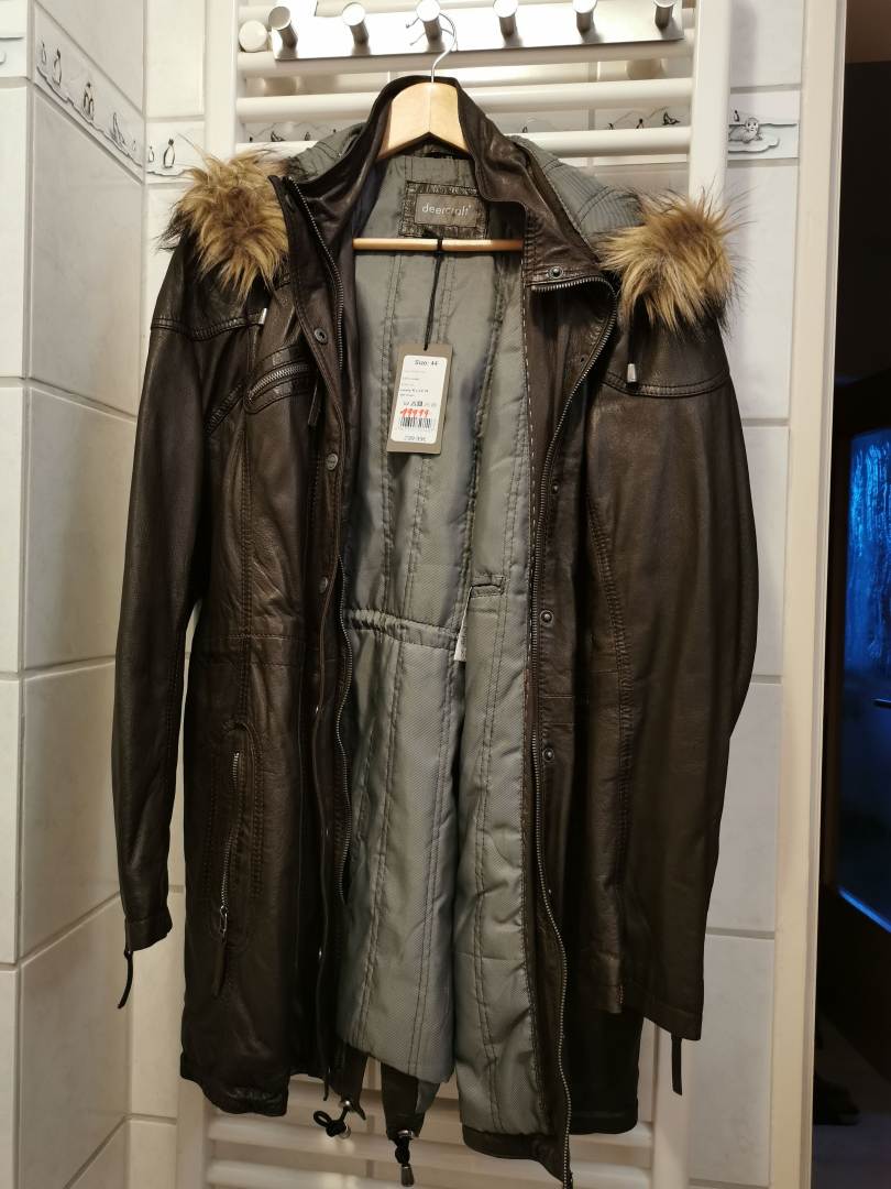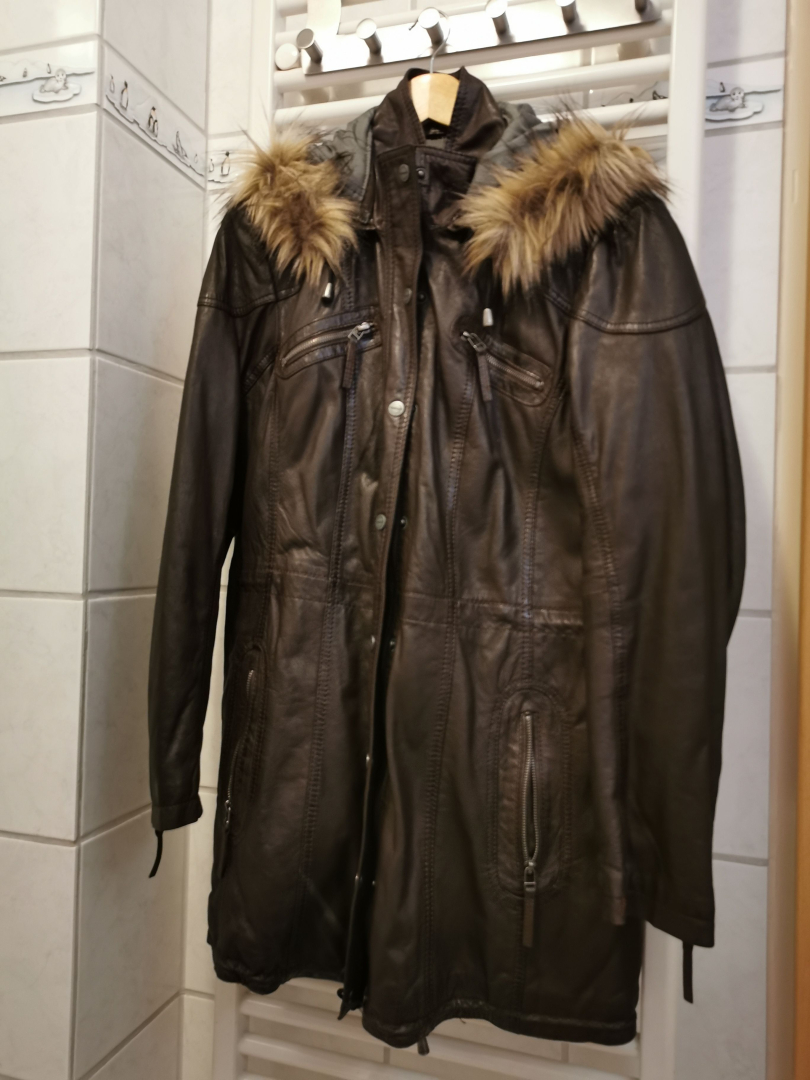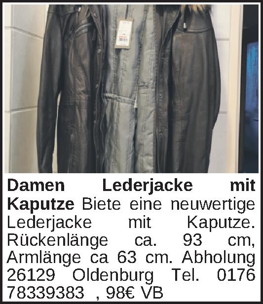 Biete eine neuwertige Lederjacke mit Kaputze. Rückenlänge ca. 93 cm, Armlänge ca 63 cm. Abholung 26129 Oldenburg Tel. 0176 78339383