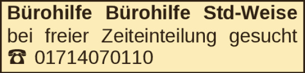 Bürohilfe Std-Weise bei freier Zeiteinteilung gesucht