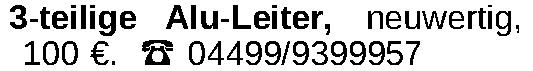 3-teilige Alu-Leiter, neuwertig, 100 €. 04499/9399957