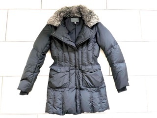 Größe 36. Die schwarze Daunenjacke ist sehr gut erhalten, warm u kuschelig. DerKragen ist abnehmbar. Verschlossen wird sie sowohl mit Reißverschluss als auch zusätzlich mit Druckknöpfen. Tel. 015224855833