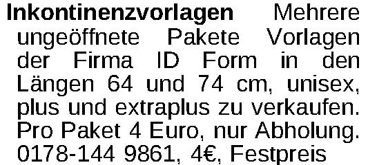 Anzeigentitel: Inkontinenzvorlagen