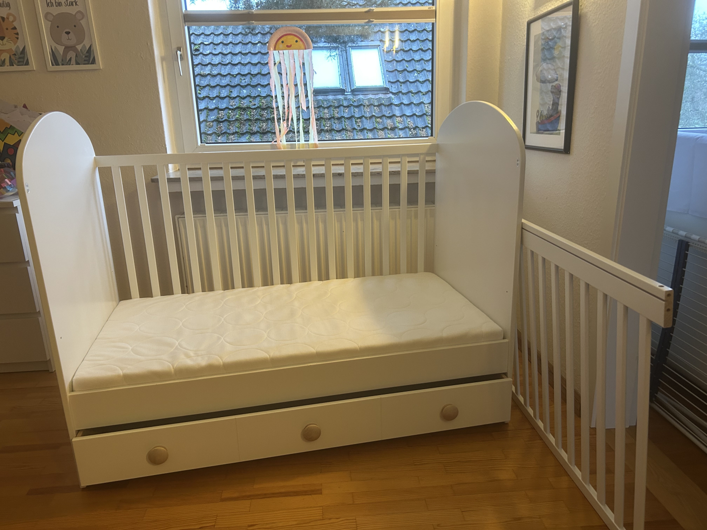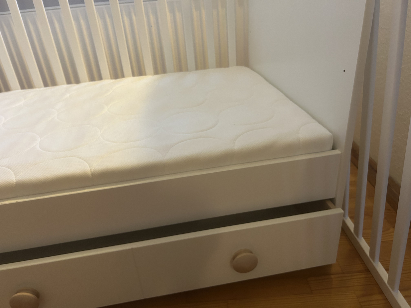 Unbenutztes Babybett, diente nur als Ablage