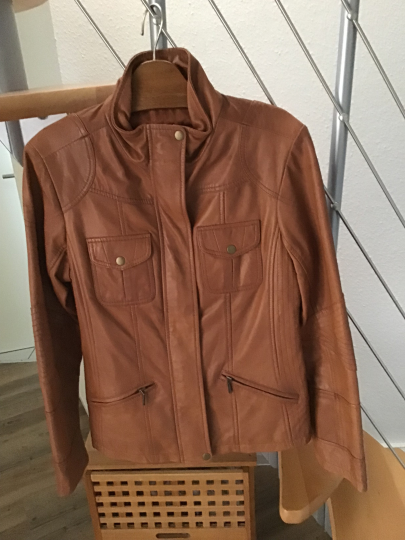 Kurze taillierte Lederjacke, Größe 42, sehr wenig getragen.Kontakt