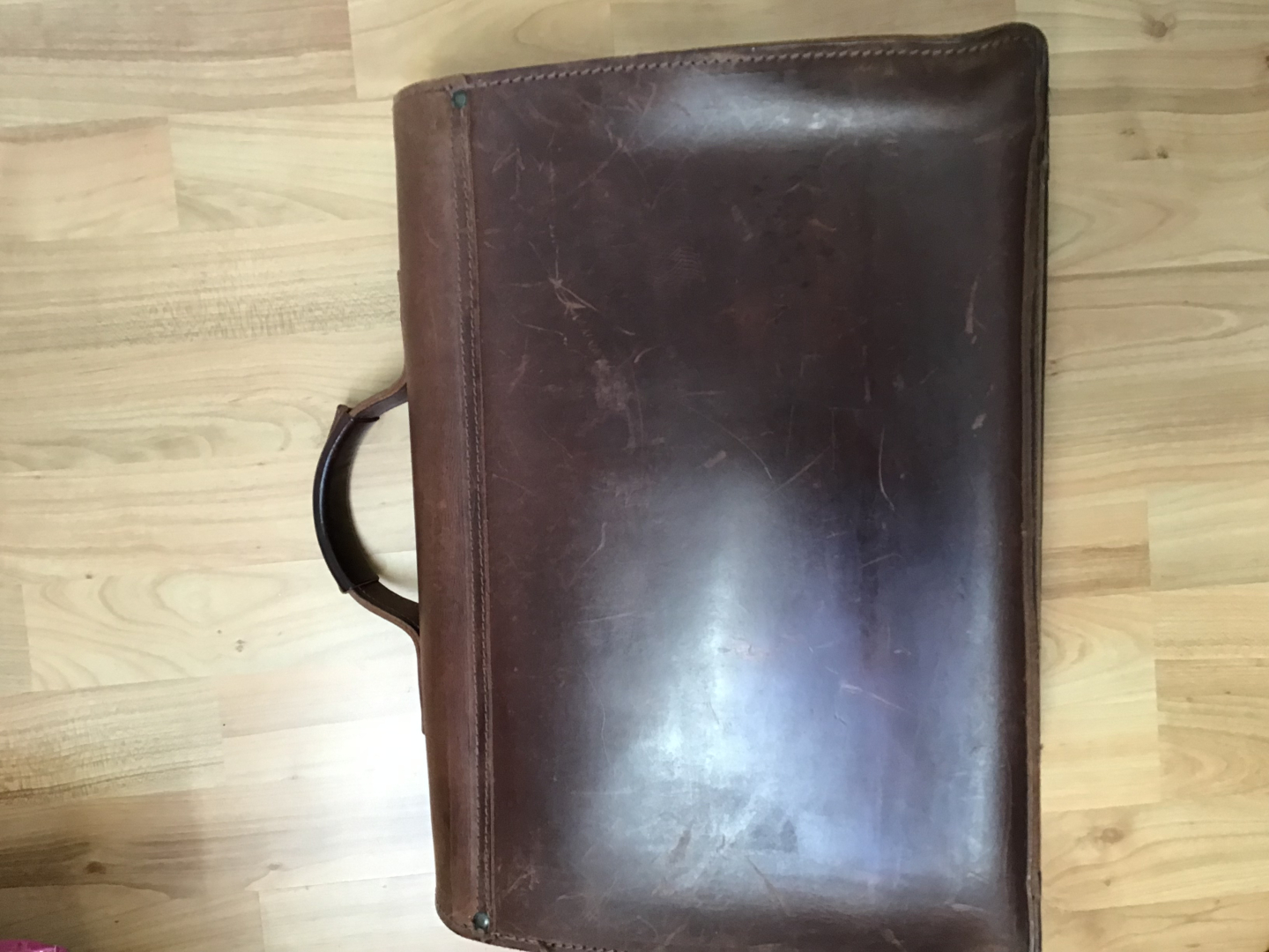 Braune Lederaktentasche, gebraucht mit Schnappverschluss, alles funktionsfähig.Kontakt
