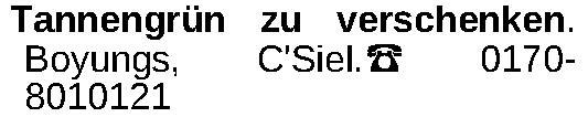 Tannengrün zu verschenken. Boyungs, C'Siel.‡ 01708010121Kontakt