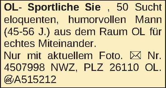 Sucht eloquenten, humorvollen Mann (45–56) aus dem Raum OL für echtes Miteinander.