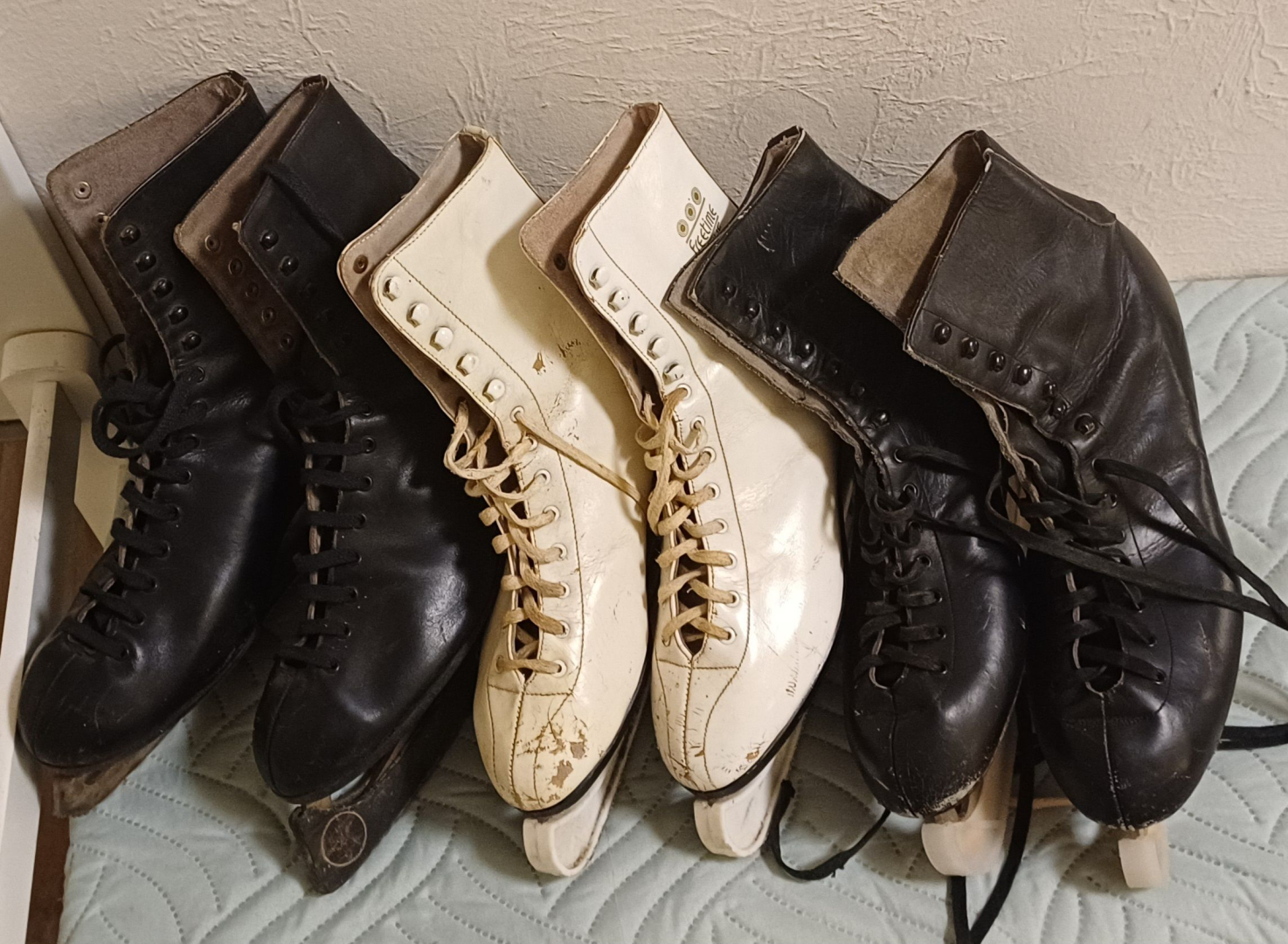 3 Paar Schlittschuhe , Leder, RetroDamen Schlittschuh, weiß, Größe 40,