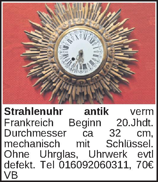 Anzeigentitel: Strahlenuhr antik