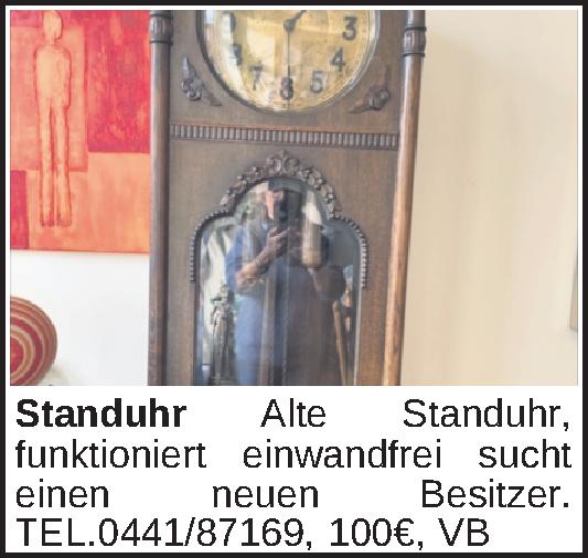 Alte Standuhr, funktioniert einwandfrei sucht einen neuen Besitzer.TEL.0441/87169