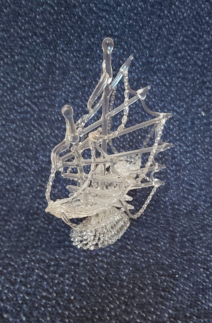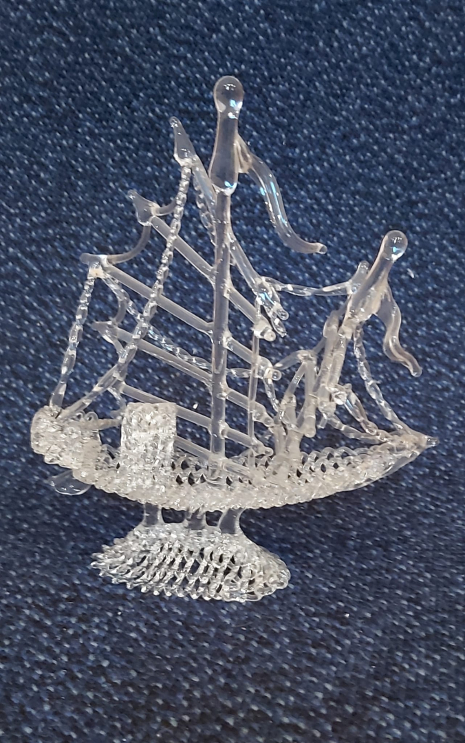 Verkauf eine mehr als 35 Jahre alte gläserne Dschunke.Länge: 17 cm