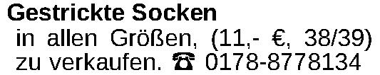 Gestrickte Socken in allen Größen, (11,- €, 38/39) zu verkaufen. ‡ 0178-8778134Kontakt
