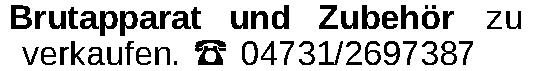Brutapparat und Zubehör zu verkaufen. ‡ 04731/2697387Kontakt