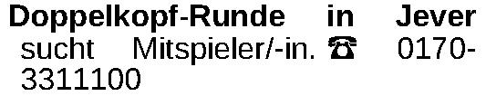 Doppelkopf-Runde in sucht Mitspieler/-in. ‡ 3311100 Jever 0170-Kontakt