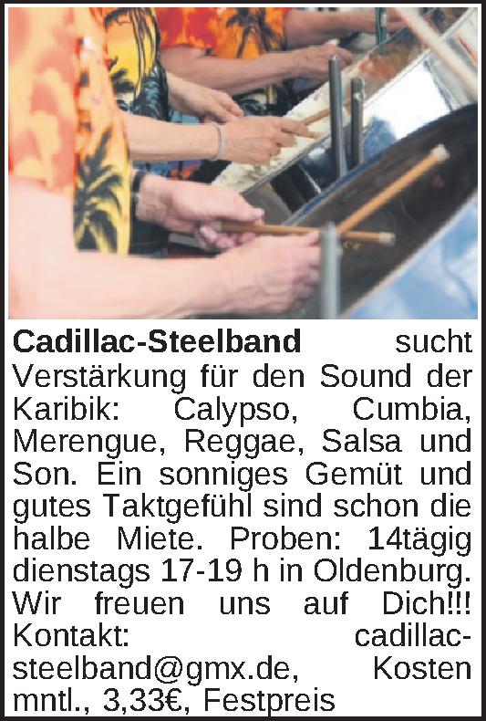 Anzeigentitel: Cadillac-Steelband