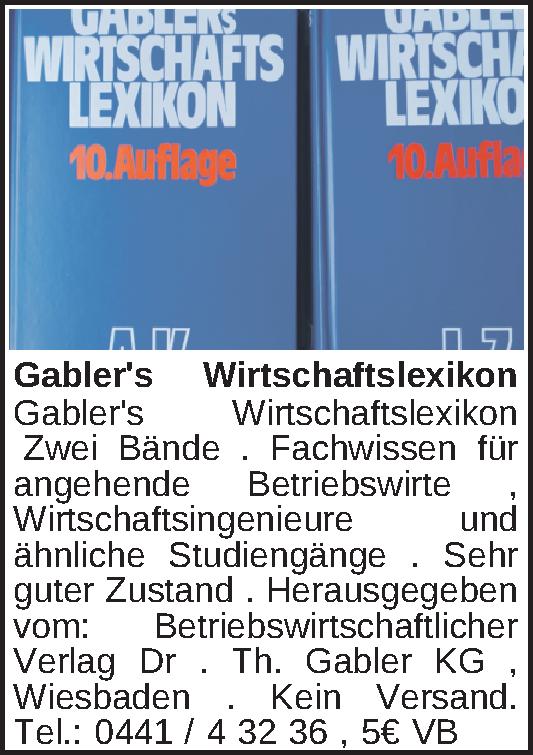 Anzeigentitel: Gabler's Wirtschaftslexikon