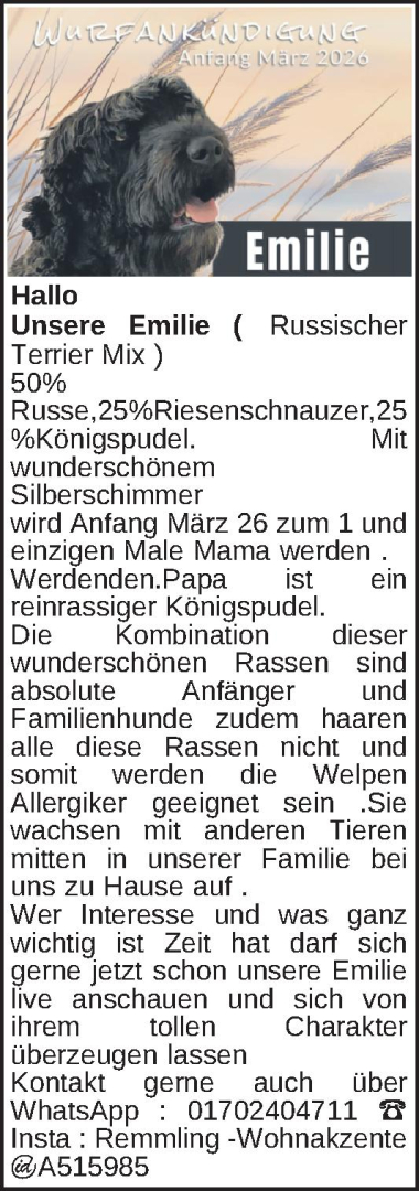 Anzeigentitel: Wurfankündigung