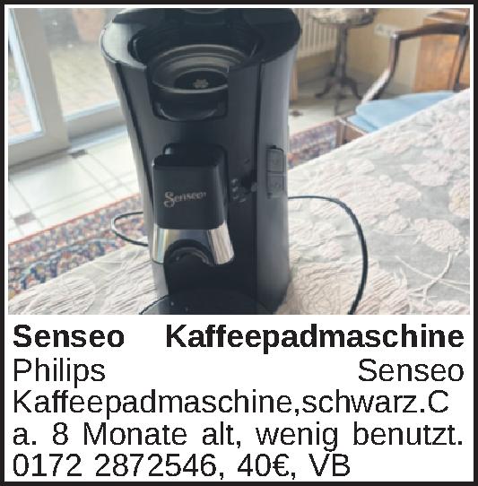 Philips Senseo Kaffeepadmaschine,schwarz.Ca. 8 Monate alt, wenig benutzt. 0172 2872546Kontakt
