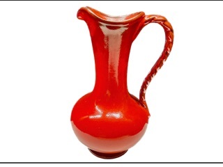 Die Vase mit geflochtenem Henkel ist innen lasiert in rot und grau. Die Höhe beträgt ca 28 cm. Die Vase ist ohne Beschädigung und versehen mit einem Stempel Nr. 902 12 28. Tel 015224855833.Kontakt