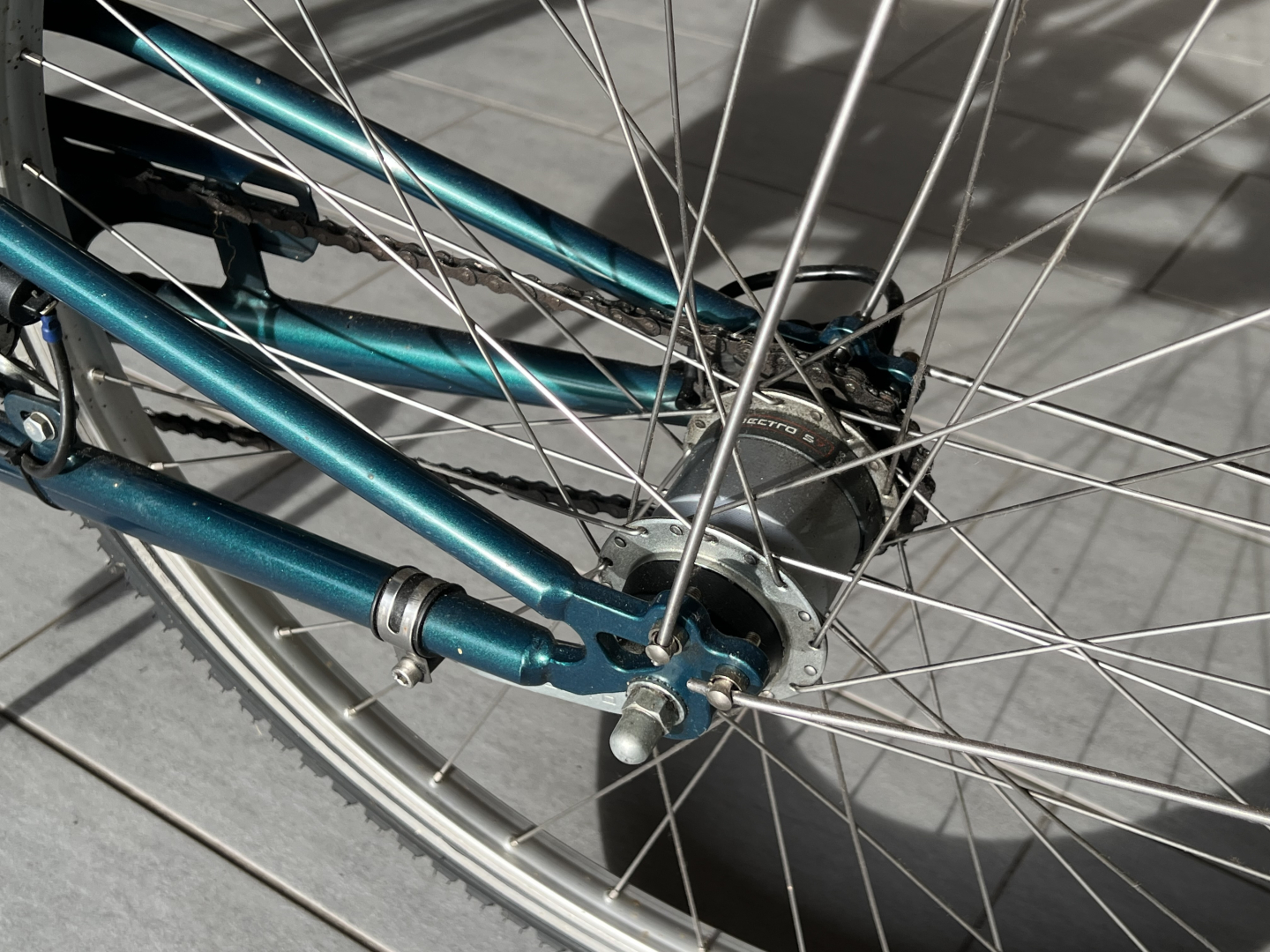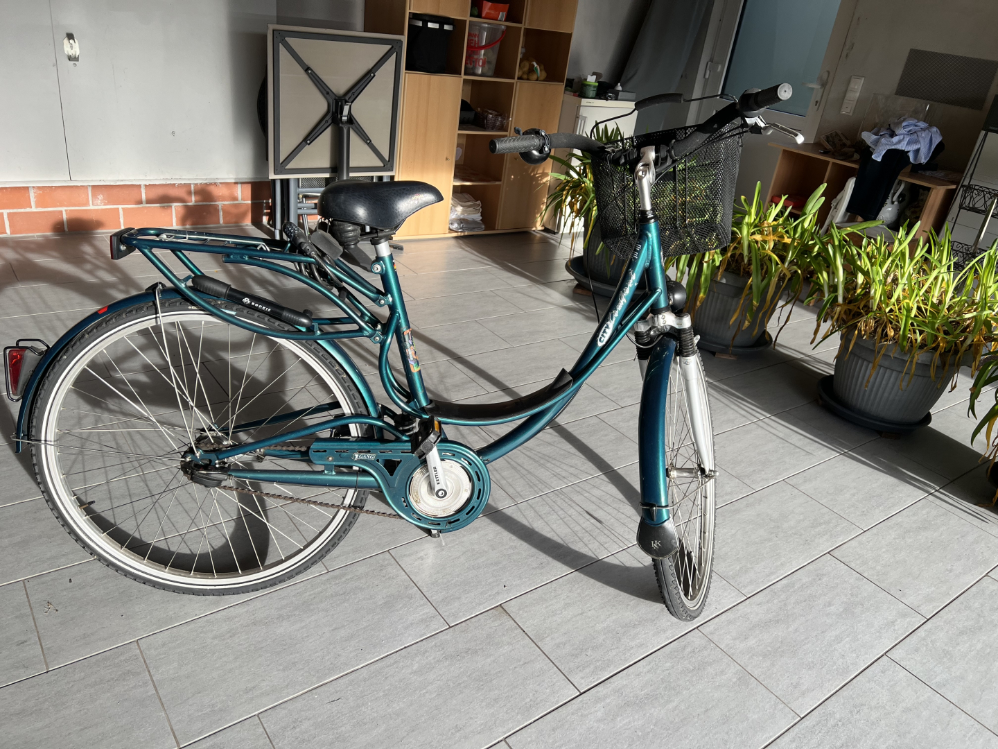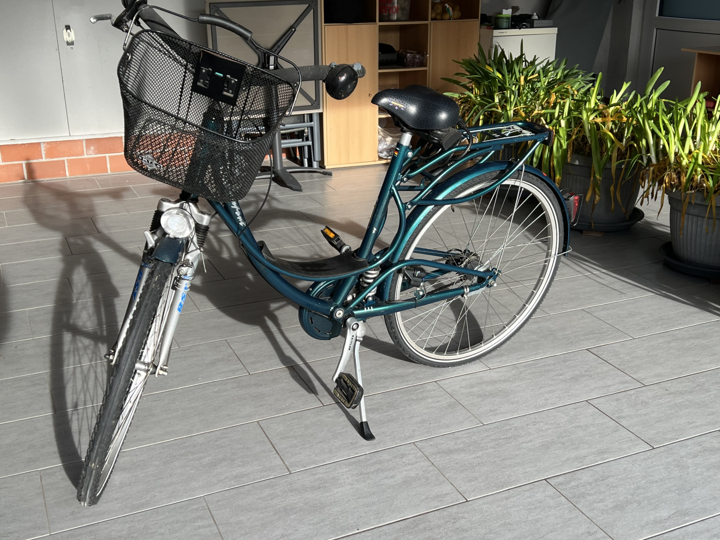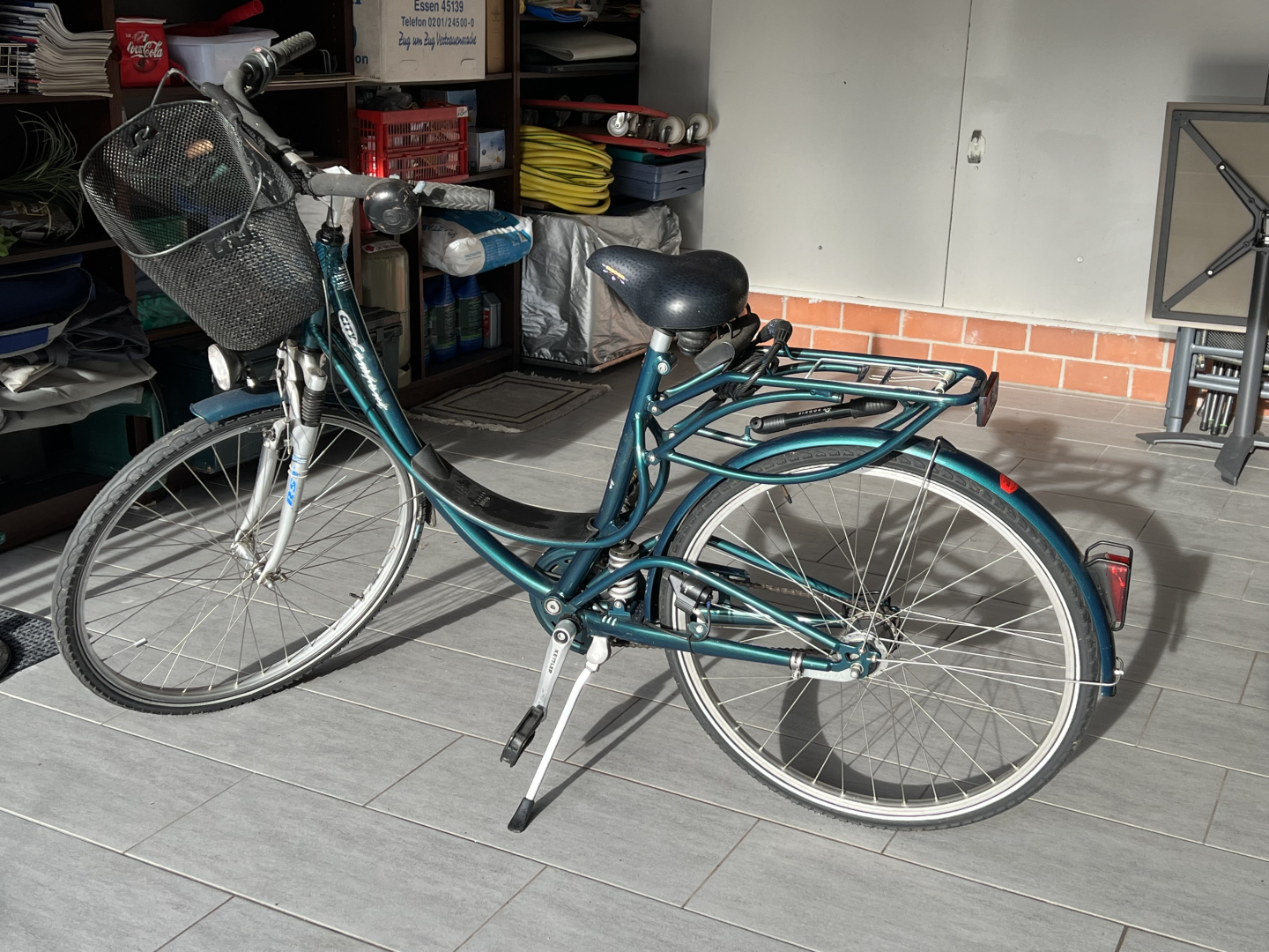 Altersbedingt wollen wir das Fahrrad verkaufen. Es hat wohl einen 28-Rahmen, ist grün und hat eine 7-Gang Nabenschaltung mit Rücktrittbremse sowie in der Mitte des Rahmens eine einstellbare Federung. Des Weiteren hat es einen Gel-Sattel und einen Einkaufskorb.