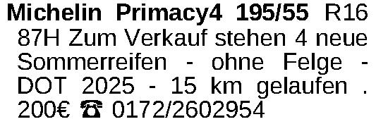 Anzeigentitel: Michelin Primacy4 195/55 R16 87H
