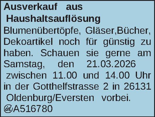 Erscheinungsdatum: Anzeige vom 17.3.2026 in der Rubrik "Haushaltsauflösungen"