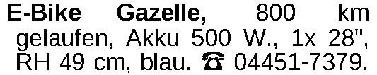 Erscheinungsdatum: Anzeige vom 17.3.2026 in der Rubrik "Fahrräder und Zubehör"