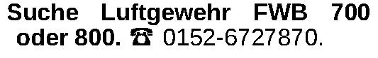 Suche Luftgewehr FWB 700 oder 800. ‡ 0152-6727870.Kontakt