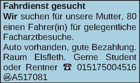 Anzeigentitel: Fahrdienst gesucht