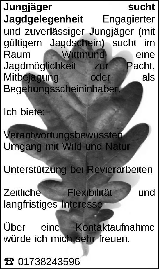 Anzeigentitel: Jungjäger sucht Jagdgelegenheit
