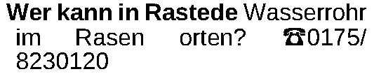 Wer kann in Rastede Wasserrohr im Rasen orten? ‡0175/ 8230120Kontakt