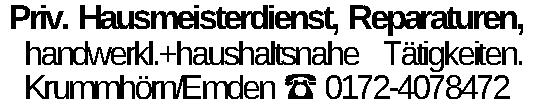 Priv. Hausmeisterdienst, Reparaturen, handwerkl.+haushaltsnahe Tätigkeiten. Krummhörn/Emden ‡ 0172-4078472Kontakt