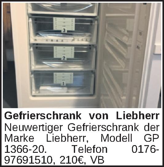 Neuwertiger Gefrierschrank der Marke Liebherr, Modell GP 1366-20. Telefon 0176-97691510Kontakt