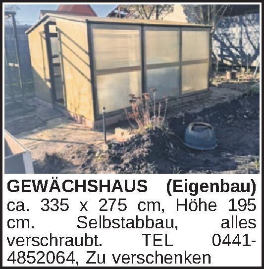 Anzeigentitel: GEWÄCHSHAUS (Eigenbau)