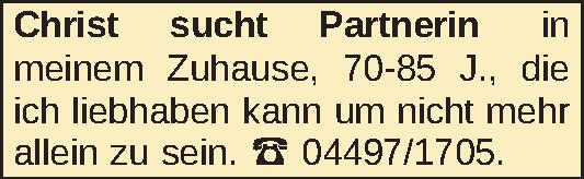 Christ sucht Partnerin in meinem Zuhause, 70-85 J., die ich liebhaben kann um nicht mehr allein zu sein. 04497/1705.