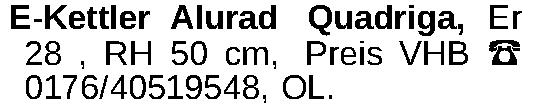 E-Kettler Alurad Quadriga, Er 28 , RH 50 cm, Preis VHB ‡ 0176/40519548, OL.Kontakt