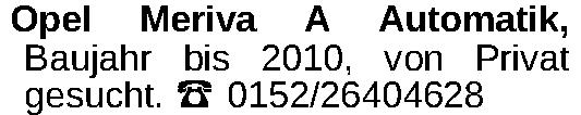 Opel Meriva A Automatik, Baujahr bis 2010, von Privat gesucht. 0152/26404628