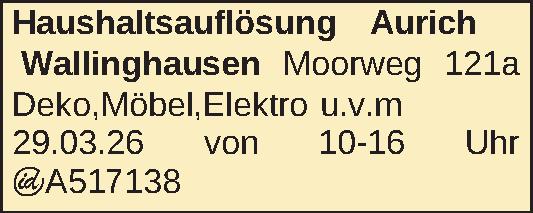 Anzeigentitel: Haushaltsauflösung in Wallinghausen